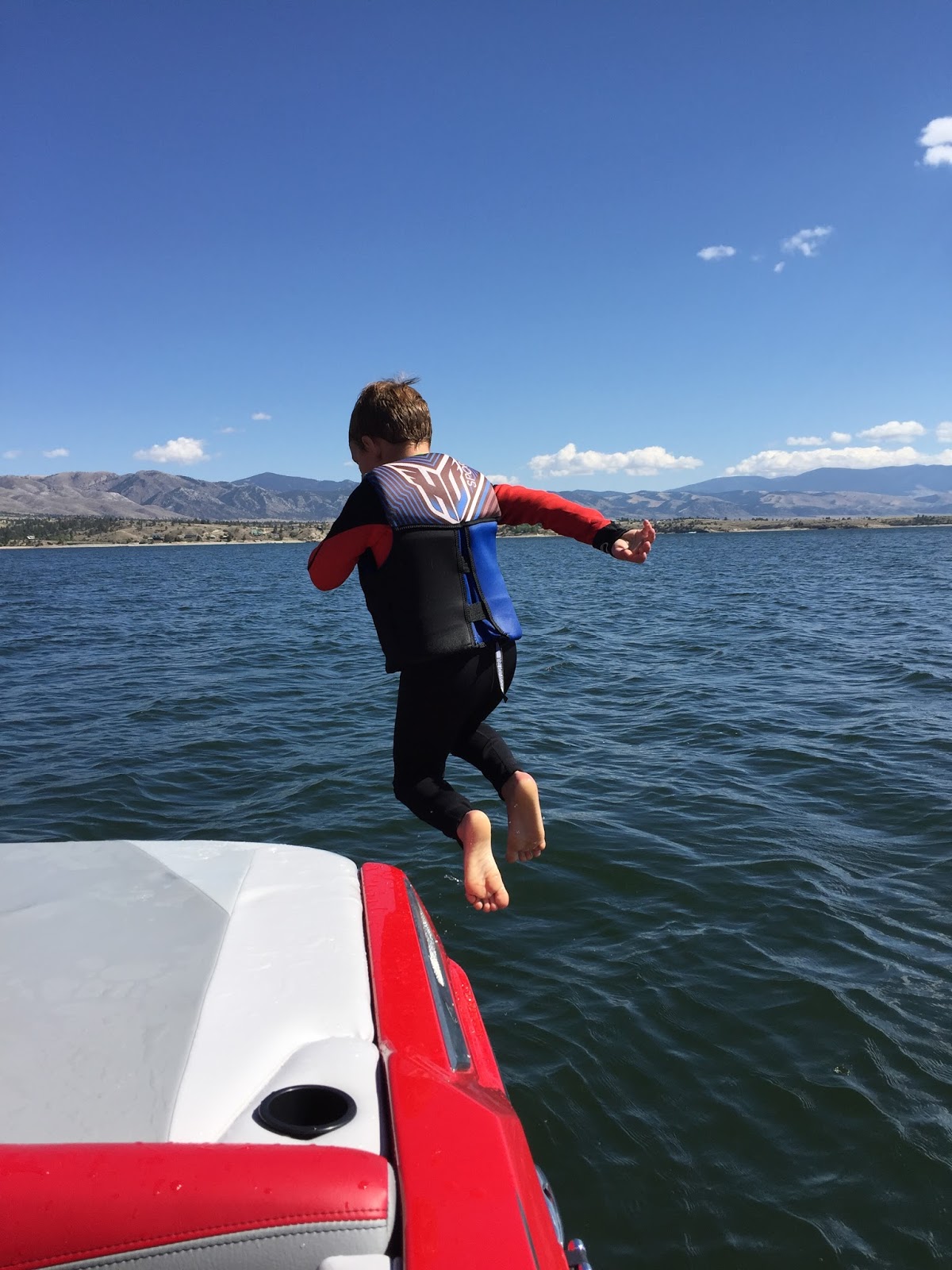 Saturday we headed to Canyon Ferry to camp for Labor Day weekend. We did not get the weather we ordered, but we were bound and determined to enjoy the time no matter what. Saturday afternoon we took a boat ride in hoodies and swimsuits.
