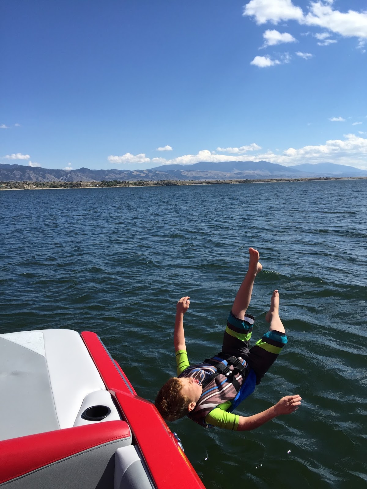 Daddy surfed behind his new boat, woo hoo! I have never pulled anyone before, so this was my first time driving while someone was surfing. Surprisingly chill, phew! |